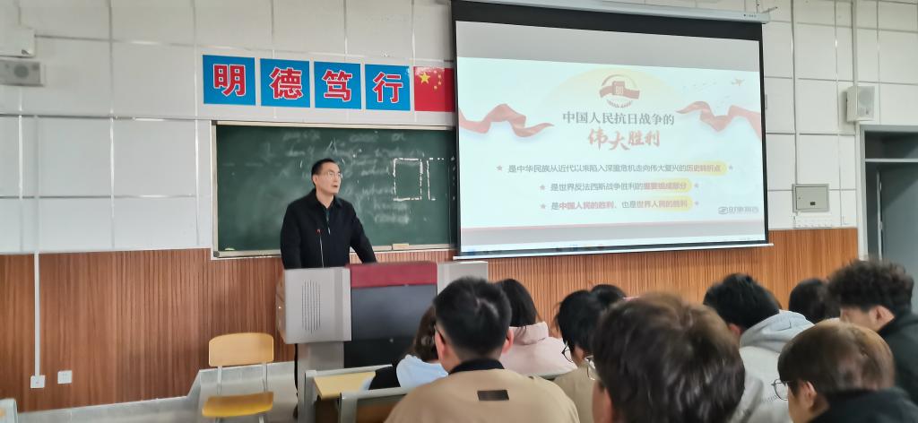 近日,副董事长王韦华以“纪念抗战胜利,坚定民族信念”为主题,为yl23455永利师生讲授形势与政策课,带领师生重温民族浴血奋战的壮阔史诗,感悟伟大抗战精神的时代价值。