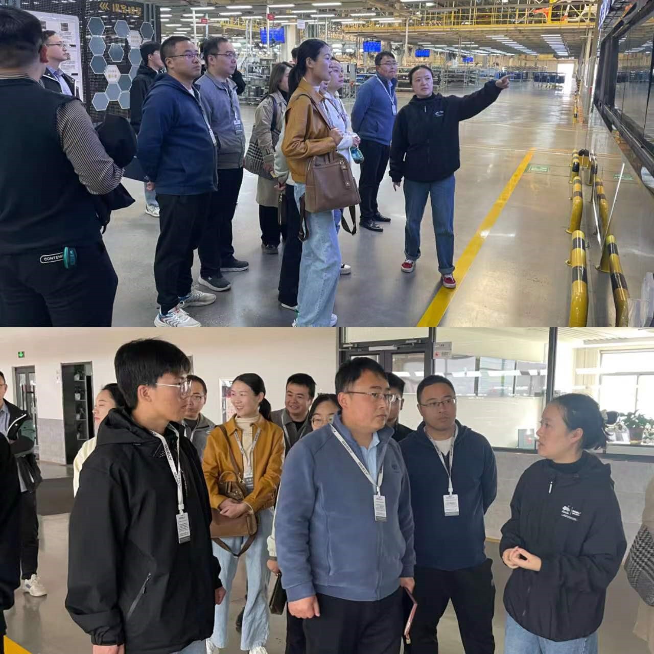 校企合作部经理王凯陪同王勇一行分别参观了吉利汽车总装、涂装、焊接车间,各车间负责人也对生产流程和成品汽车测试进行了详细介绍和现场展示。随后,校企双方开展座谈交流,吉利汽车人才经营部主管王盼介绍了公司的企业文化、公司规模、用人需求、员工培训、岗位需求、薪资待遇、职位晋升等基本情况。目前在岗实习和就业的员工们通过交谈,对课程开设、能力培养等方面提出了建议。王经理认真听取了用人单位和员工们的反馈和建议,对公司在人才培养、课程开发、技能比赛、就业创业等情况进行了深入交流。双方围绕专业建设、人才培养、职业能力培养、校企协同育人、发展路径和合作意向等方面进行了深入探讨,共同查找学科专业设置、就业服务等内容存在的短板。