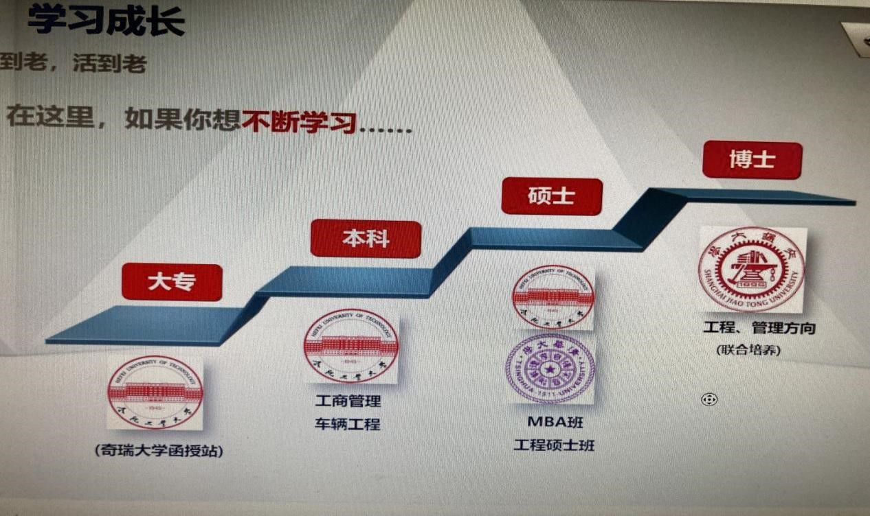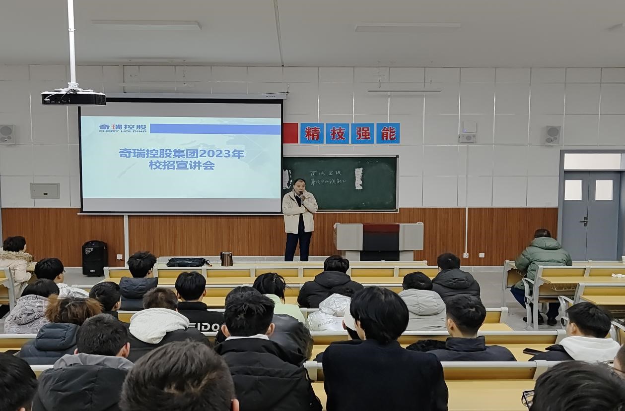奇瑞控股集团秉持“创新 责任 共赢”的核心理念,“匠心打造卓越品牌”的愿景,始终以产业报国为己任,诚邀公司同学加入公司,为实现成为具有全球竞争力的世界级汽车企业目标共同努力。报告会上,张总先后以视频、图片、PPT等方式,从奇瑞汽车发展历程、企业文化、岗位需求及用人标准、企业人才储备及人才培养等多方面进行宣讲,为公司员工带来更多岗位选择的同时,也让同学们能开阔视野,更深入地了解行业发展状态,明确未来个人职业生涯规划。